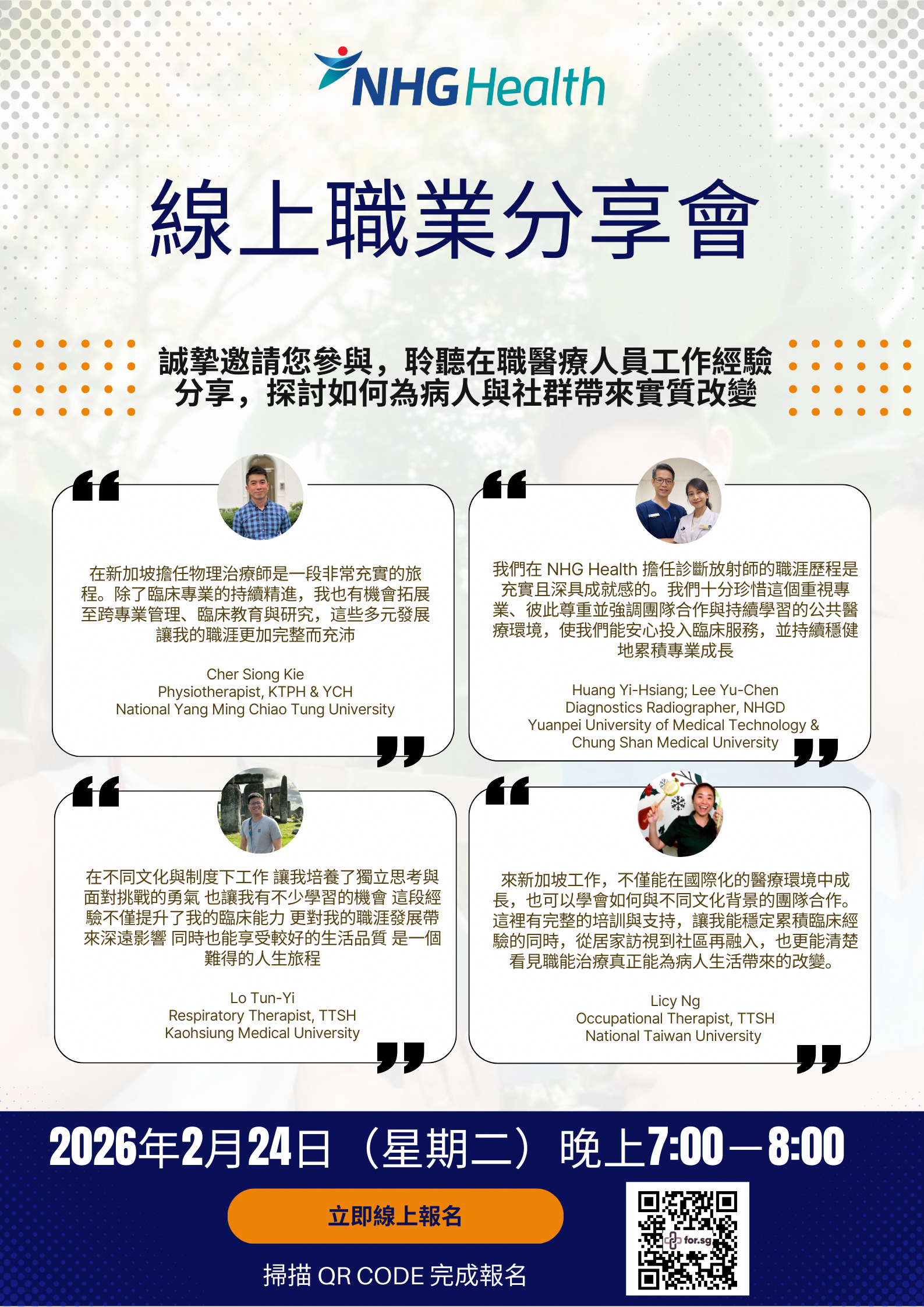 【徵才說明會】NHG Health Career Webinar – Allied Health