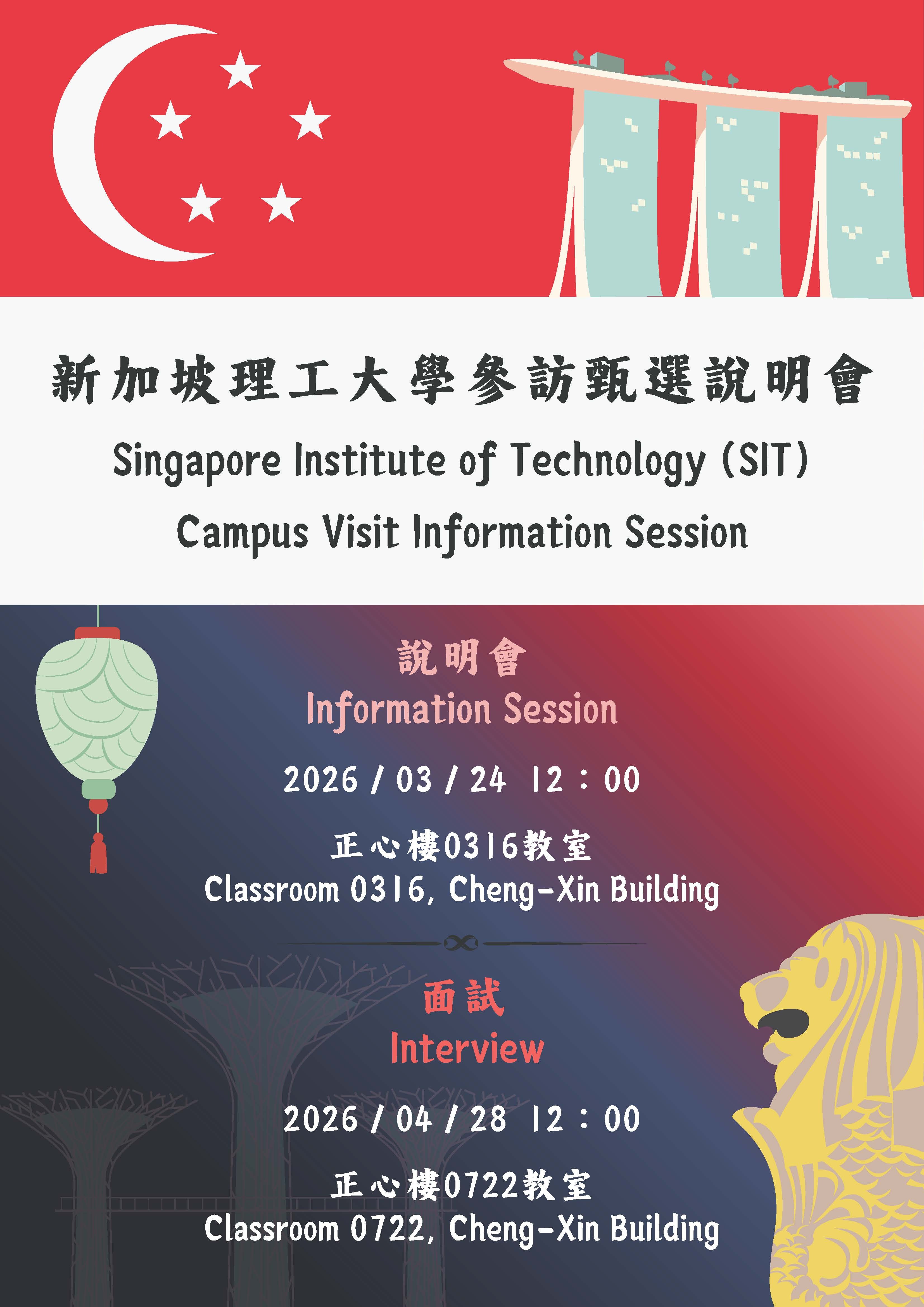 【海外交流甄選說明會】職能治療系 115年「新加坡理工大學參訪」徵選說明會暨面試公告